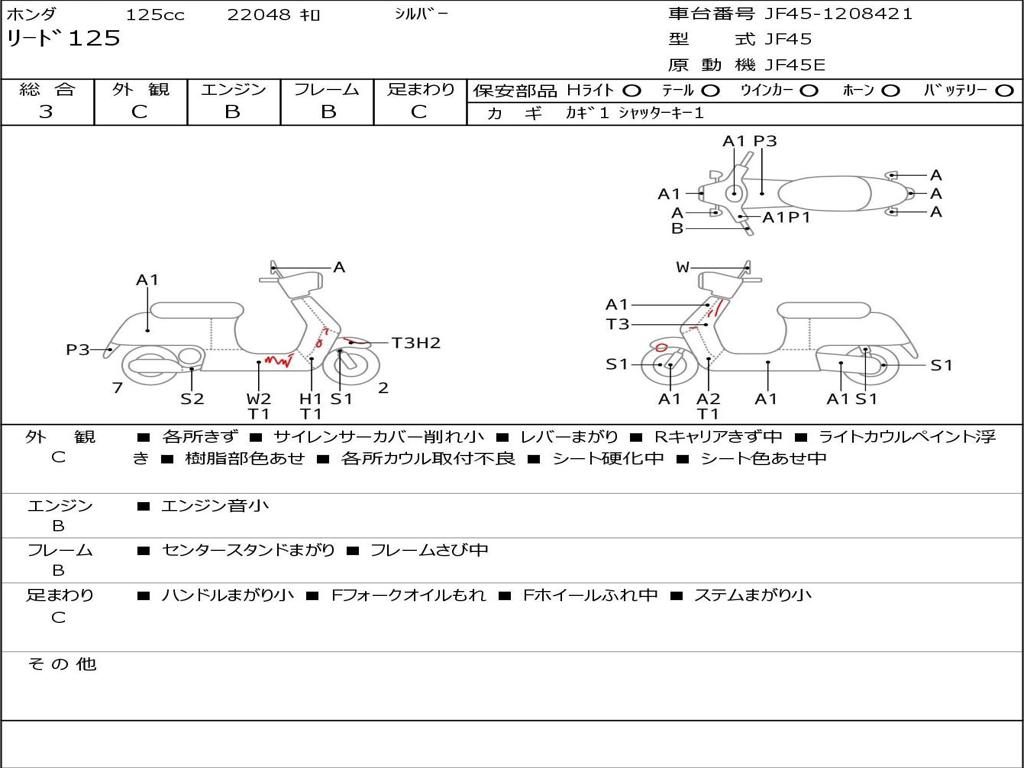 | Номер рамы / VIN | JF45-1208421 |