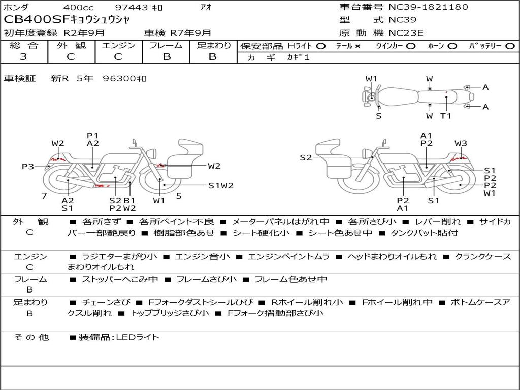 | Номер рамы / VIN | NC39-1821180 |
