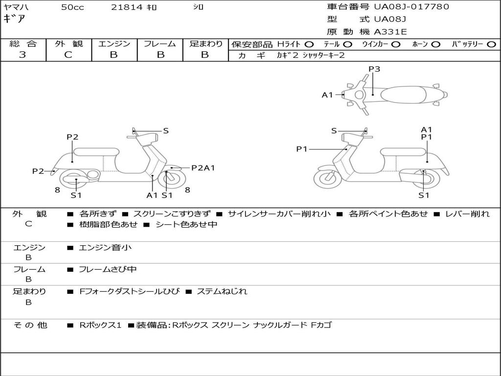 | Номер рамы / VIN | UA08J-017780 |