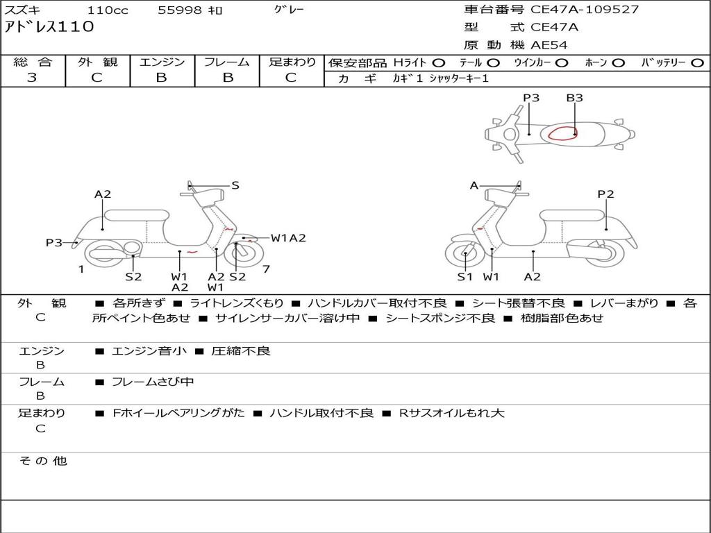 | Номер рамы / VIN | CE47A-109527 |