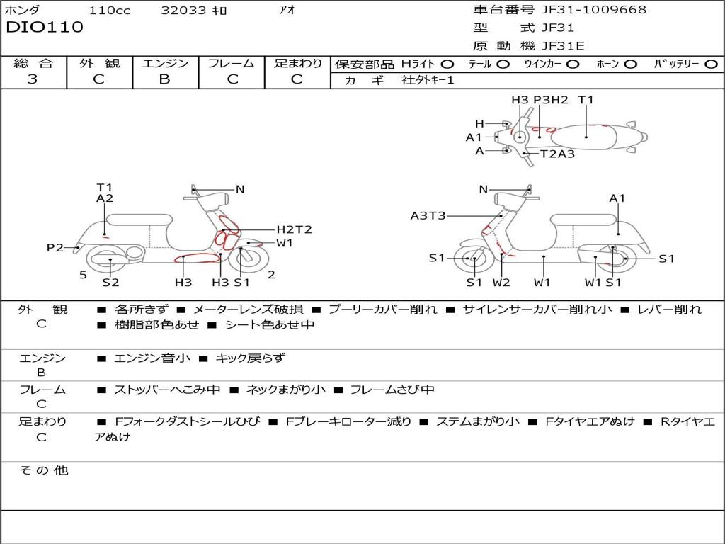 | Номер рамы / VIN | JF31-1009668 |