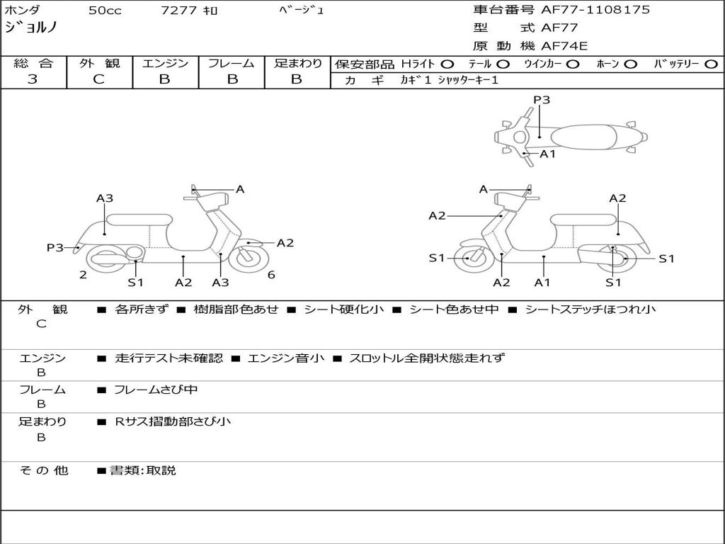 | Номер рамы / VIN | AF77-1108175 |