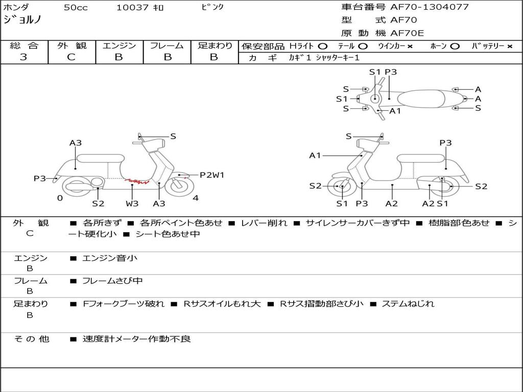 | Номер рамы / VIN | AF70-1304077 |