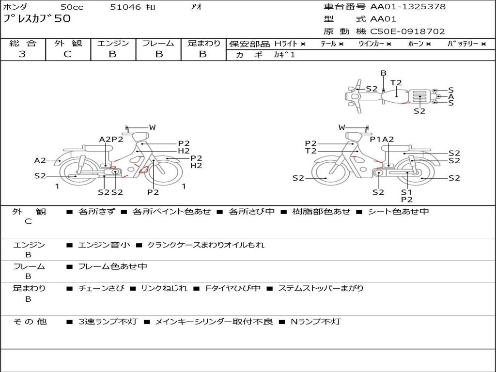 | Номер рамы / VIN | AA01-1325378 |