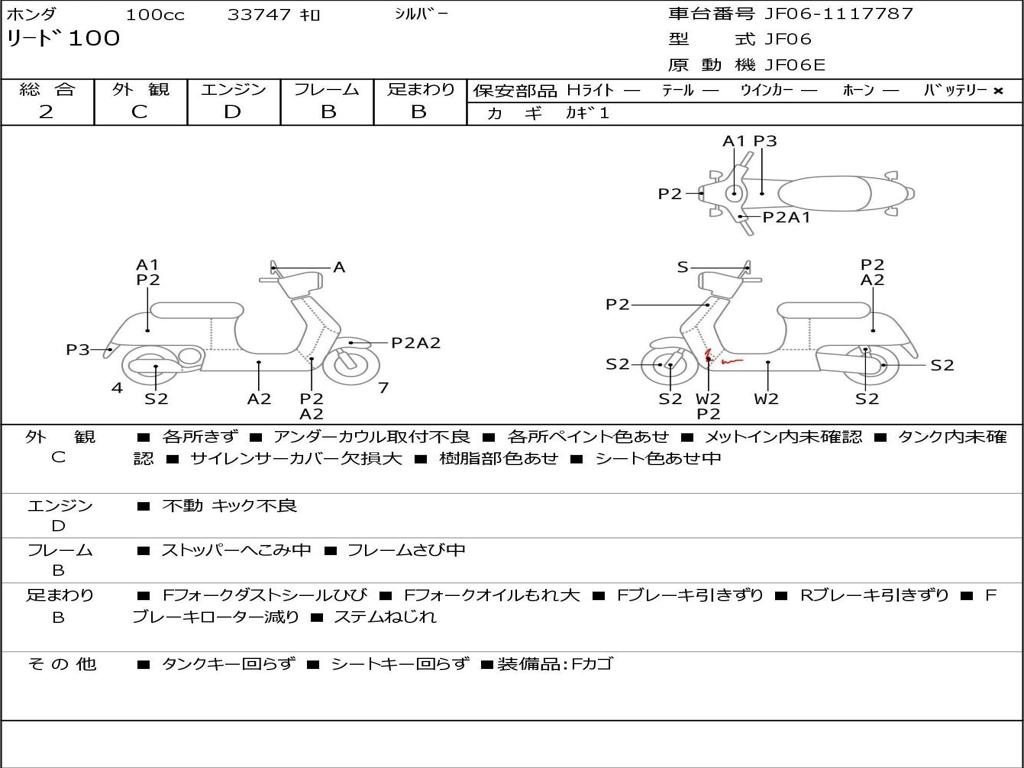 | Номер рамы / VIN | JF06-1117787 |