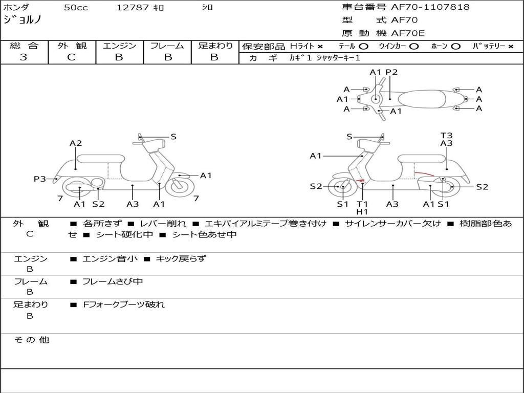 | Номер рамы / VIN | AF70-1107818 |