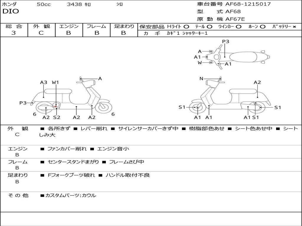 | Номер рамы / VIN | AF68-1215017 |