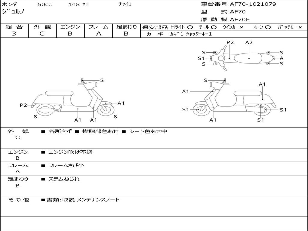 | Номер рамы / VIN | AF70-1021079 |