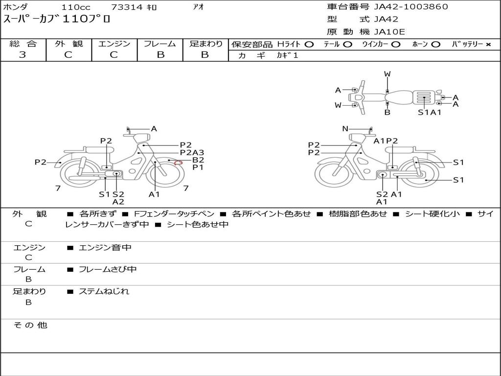 | Номер рамы / VIN | JA42-1003860 |
