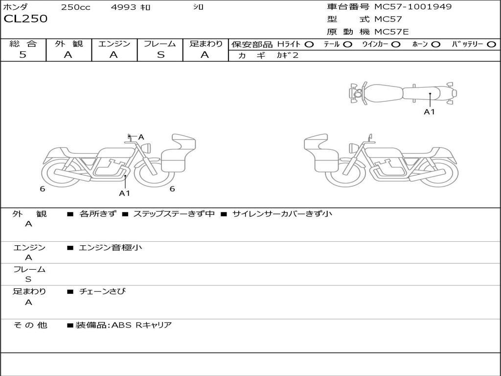 | Номер рамы / VIN | MC57-1001949 |