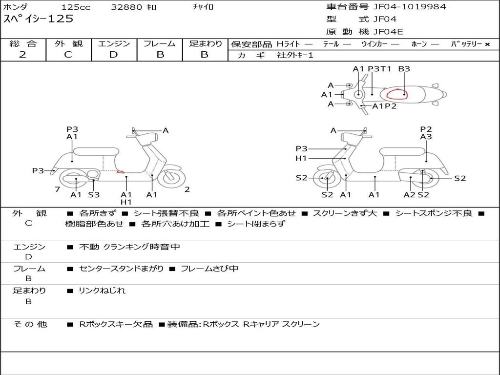 | Номер рамы / VIN | JF04-1019984 |