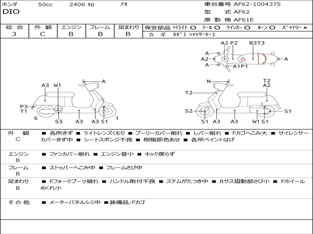 | Номер рамы / VIN | AF62-1004375 |