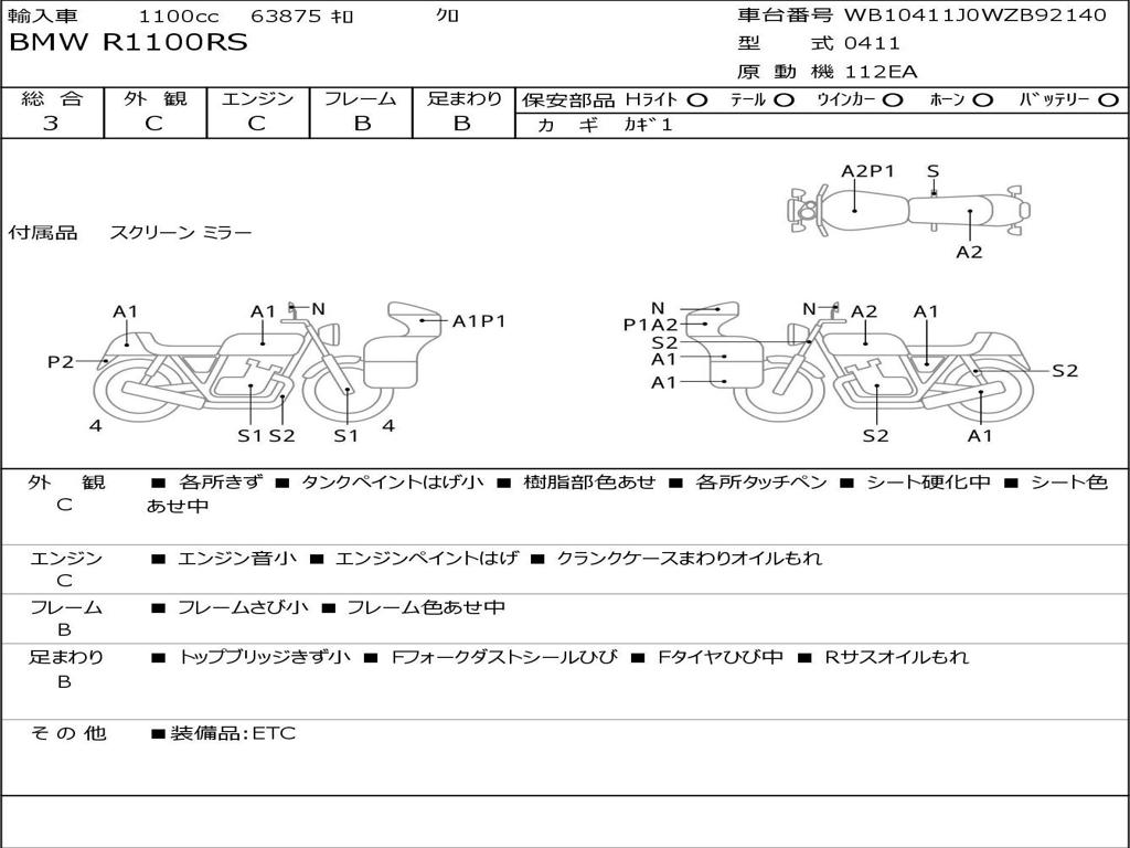 | Номер рамы / VIN | WB10411J0WZB92140 |