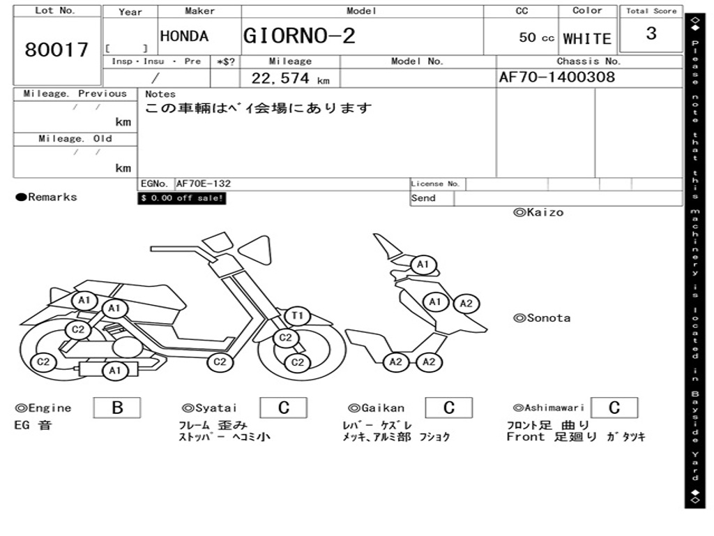 | Аукцион | ARAI BAYSIDE |