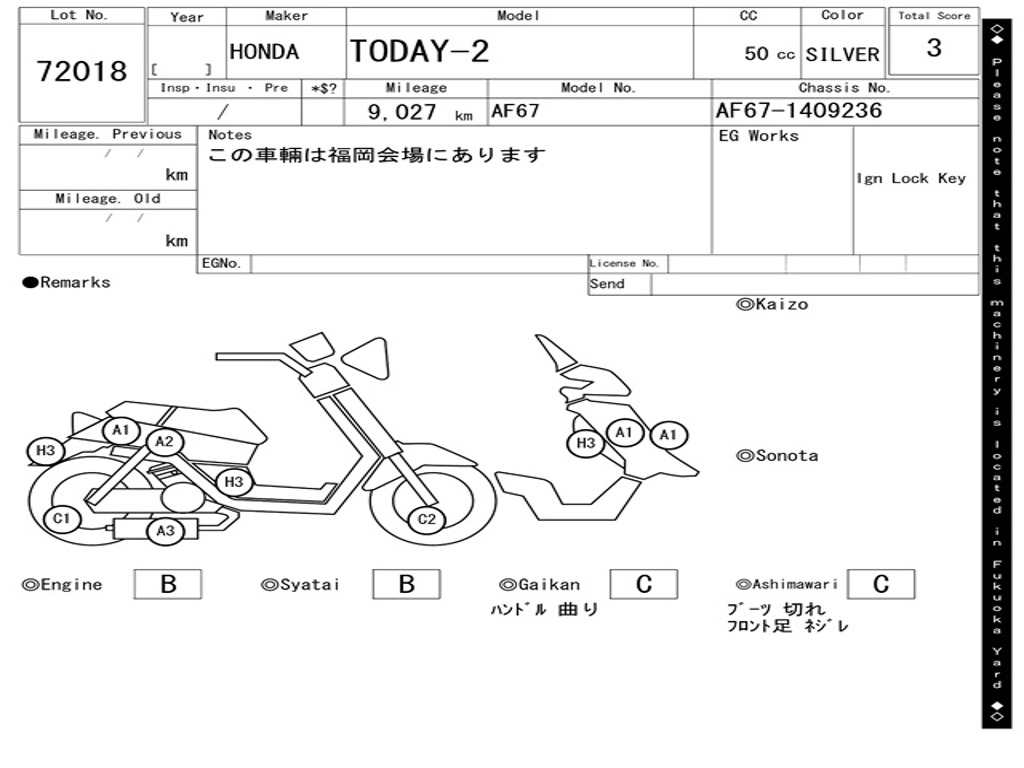 | Номер рамы / VIN | AF67-1409236 |