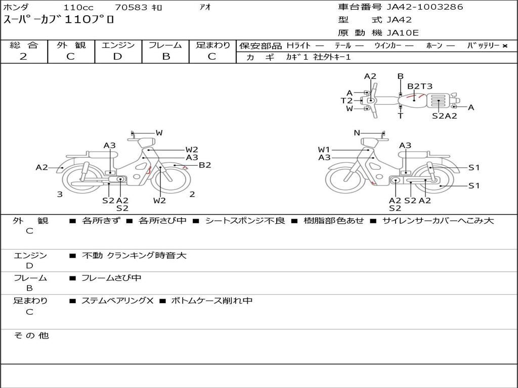 | Номер рамы / VIN | JA42-1003286 |