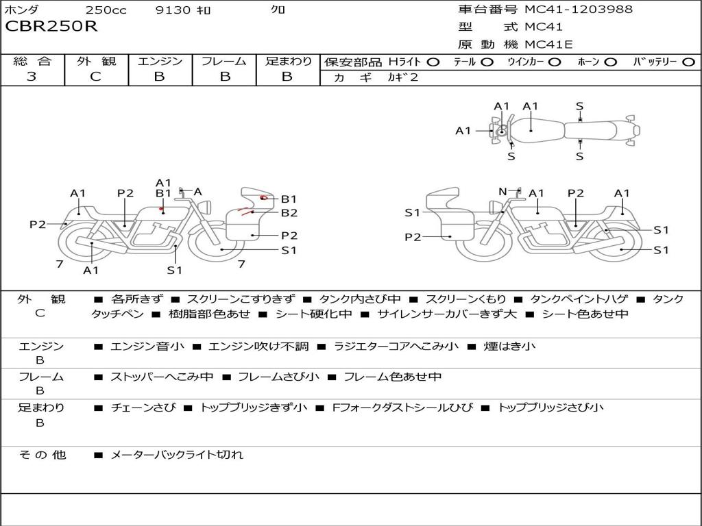 | Номер рамы / VIN | MC41-1203988 |