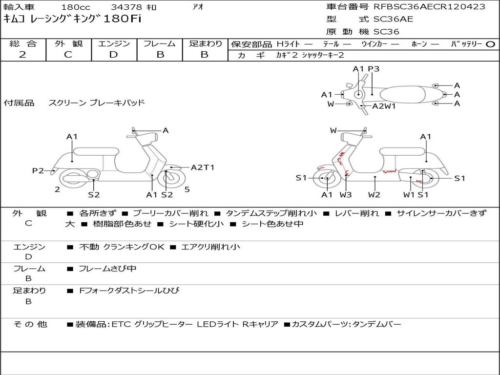 | Номер рамы / VIN | RFBSC36AECR120423 |