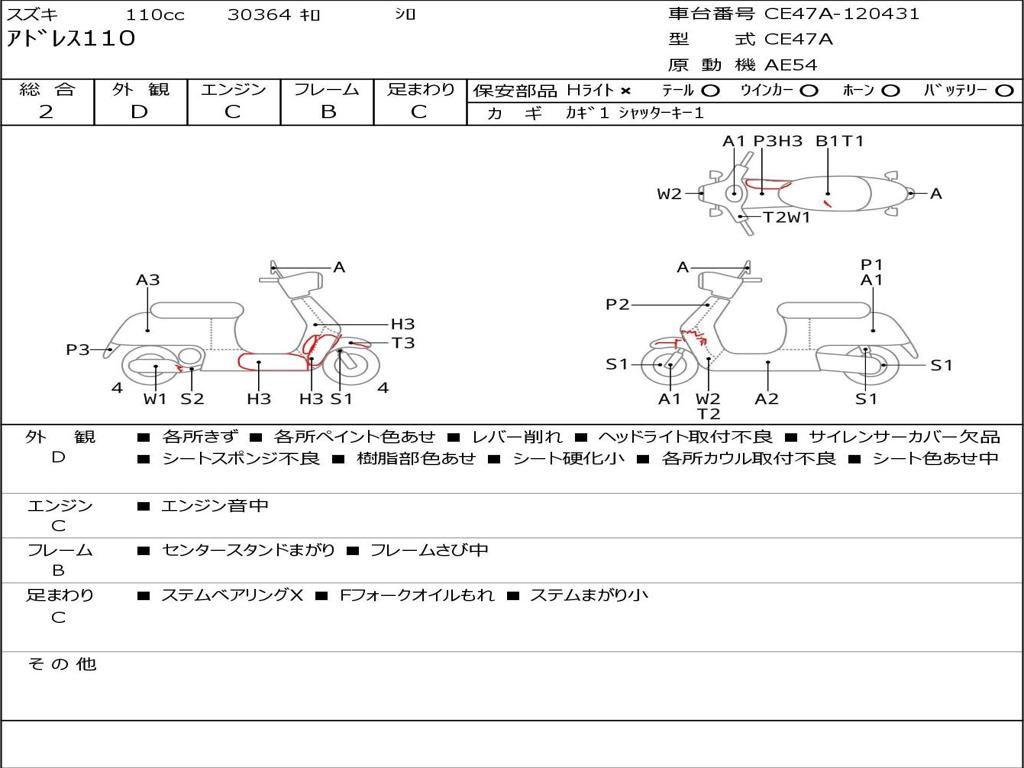 | Номер рамы / VIN | CE47A-120431 |