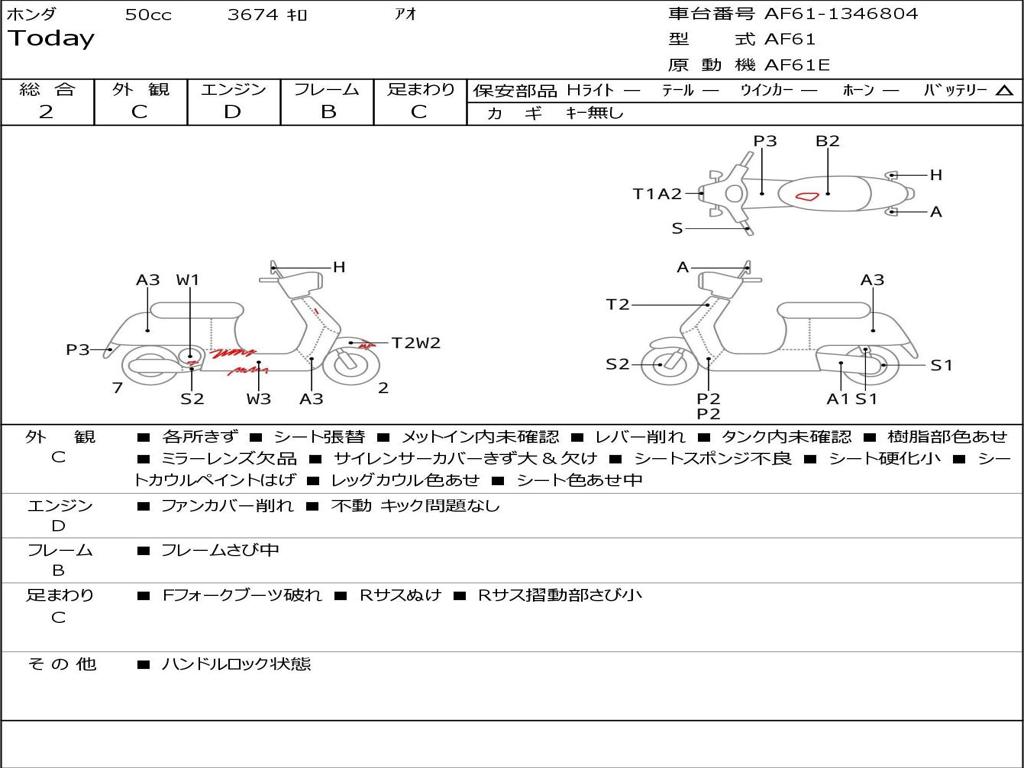| Номер рамы / VIN | AF61-1346804 |