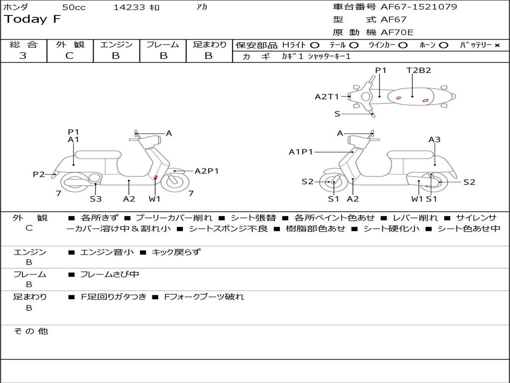 | Номер рамы / VIN | AF67-1521079 |