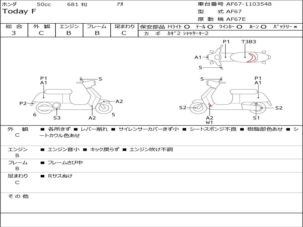 | Номер рамы / VIN | AF67-1103548 |