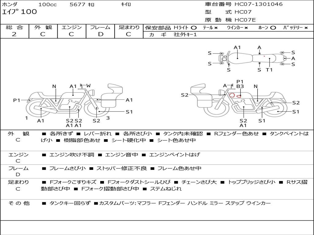 | Номер рамы / VIN | HC07-1301046 |