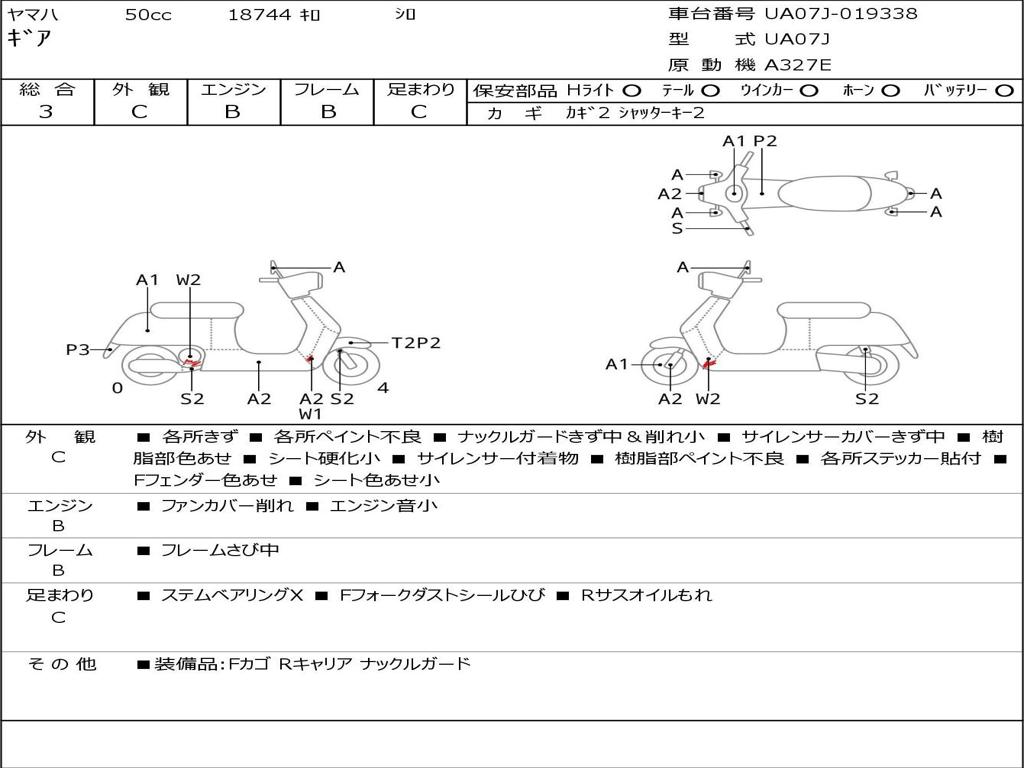 | Номер рамы / VIN | UA07J-019338 |