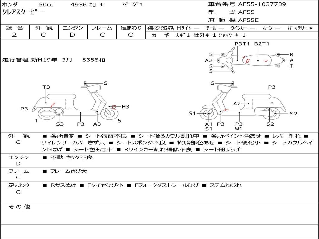 | Номер рамы / VIN | AF55-1037739 |