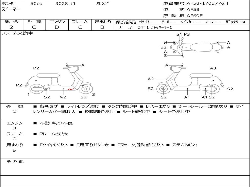| Номер рамы / VIN | AF58-1705776H |