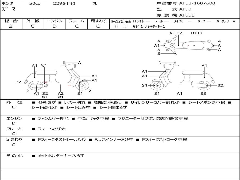 | Номер рамы / VIN | AF58-1607608 |