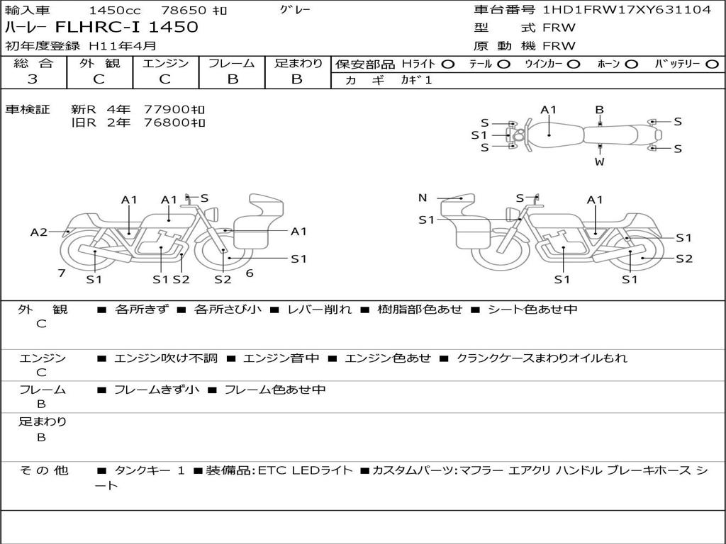 | Номер рамы / VIN | 1HD1FRW17XY631104 |