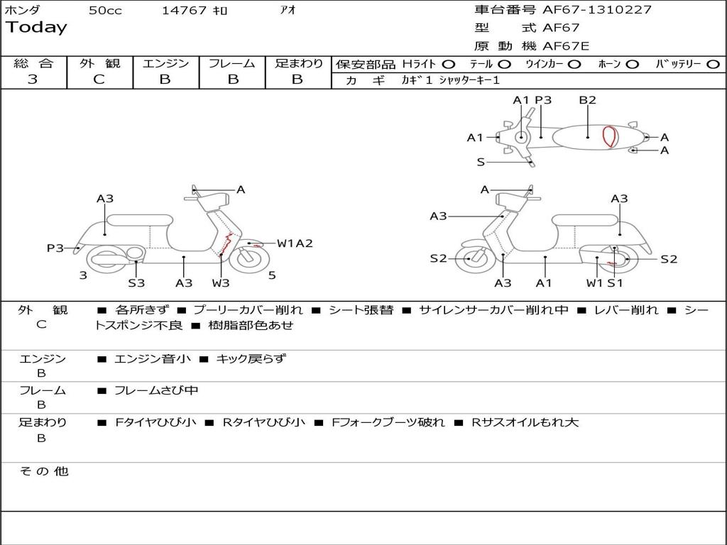 | Номер рамы / VIN | AF67-1310227 |