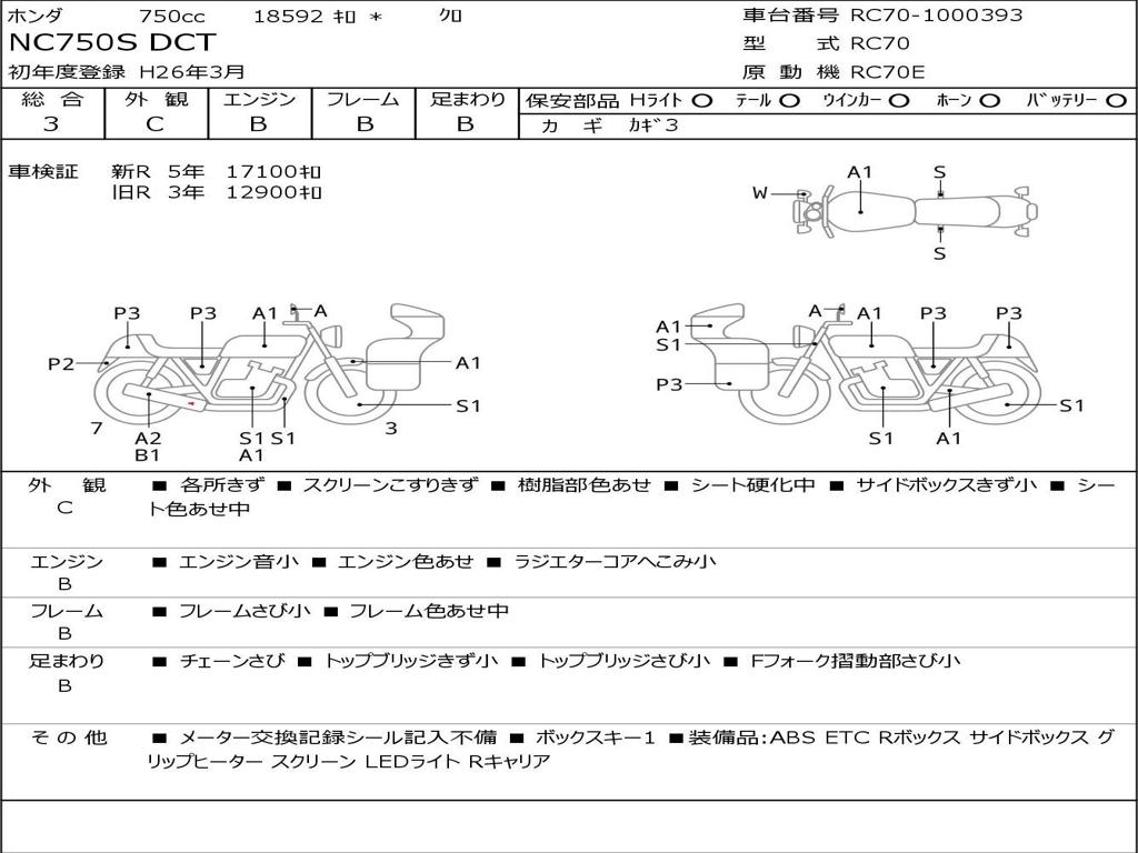 | Номер рамы / VIN | RC70-1000393 |