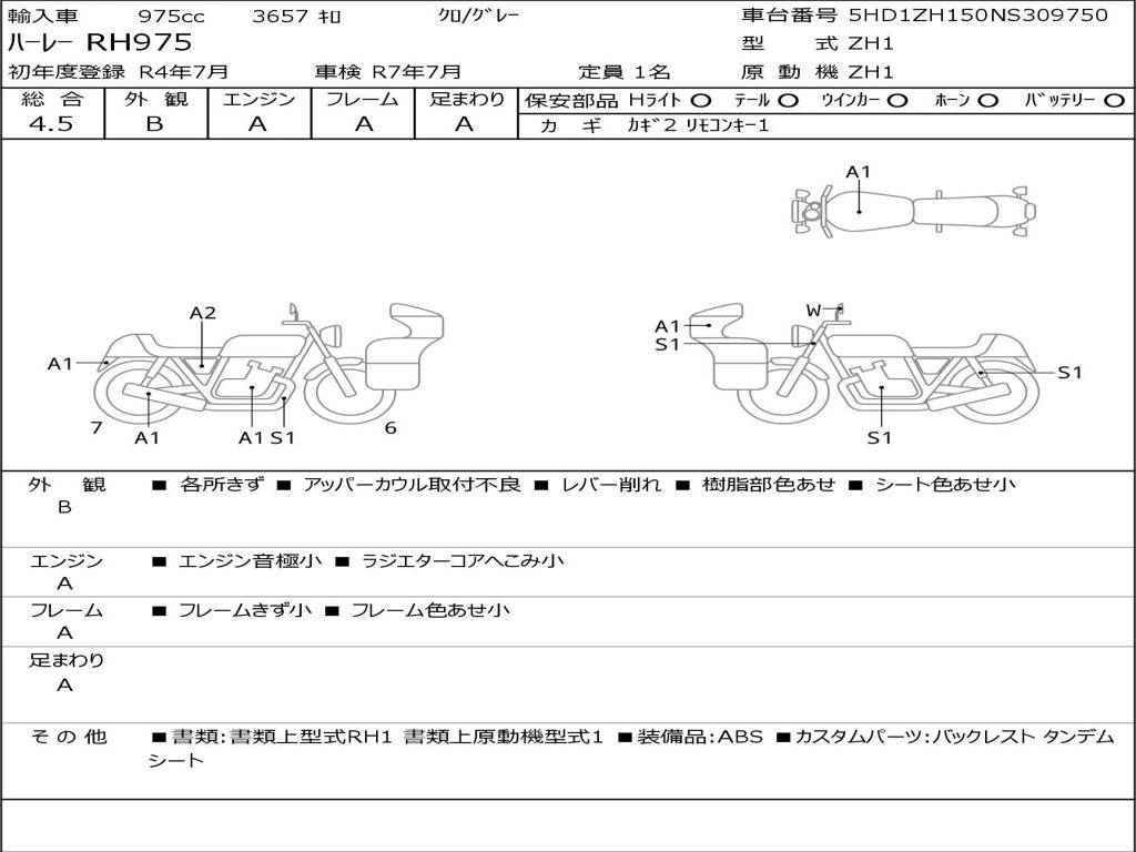 | Номер рамы / VIN | 5HD1ZH150NS309750 |