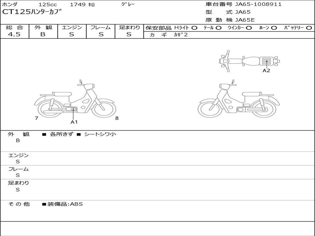 | Номер рамы / VIN | JA65-1008911 |