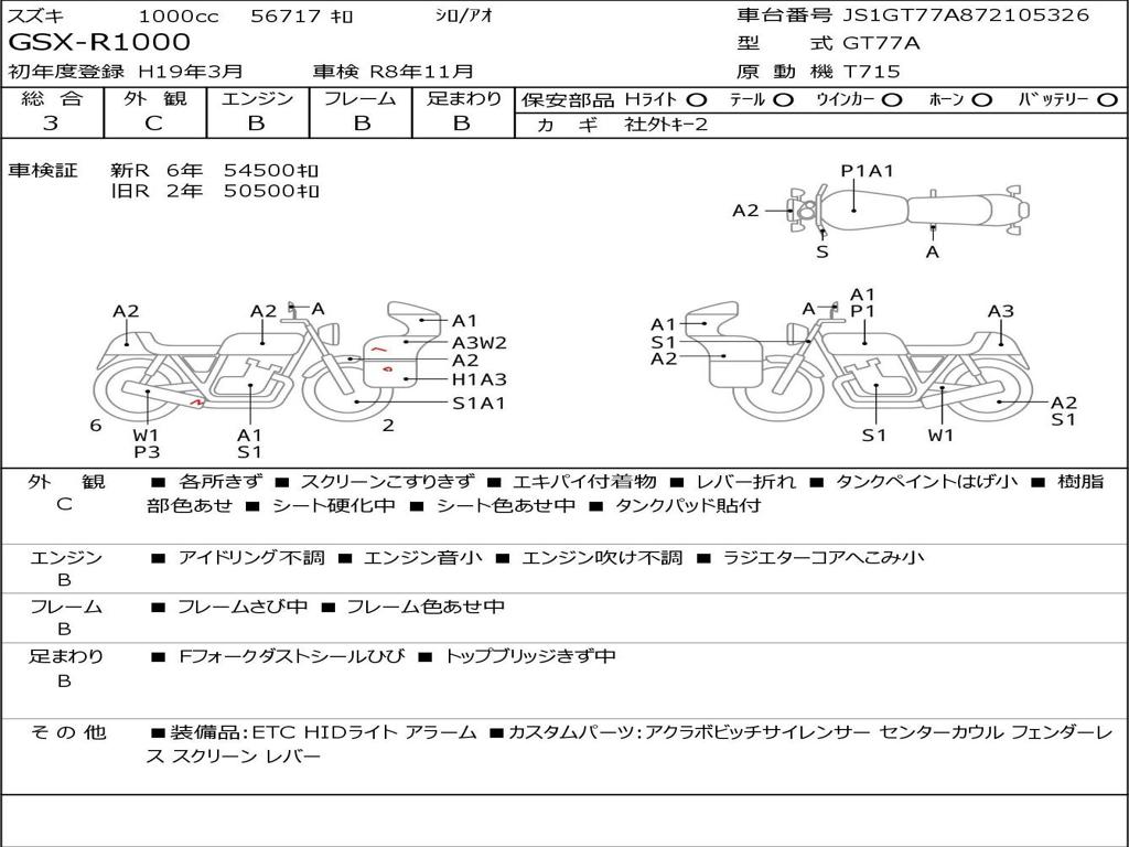 | Номер рамы / VIN | JS1GT77A872105326 |
