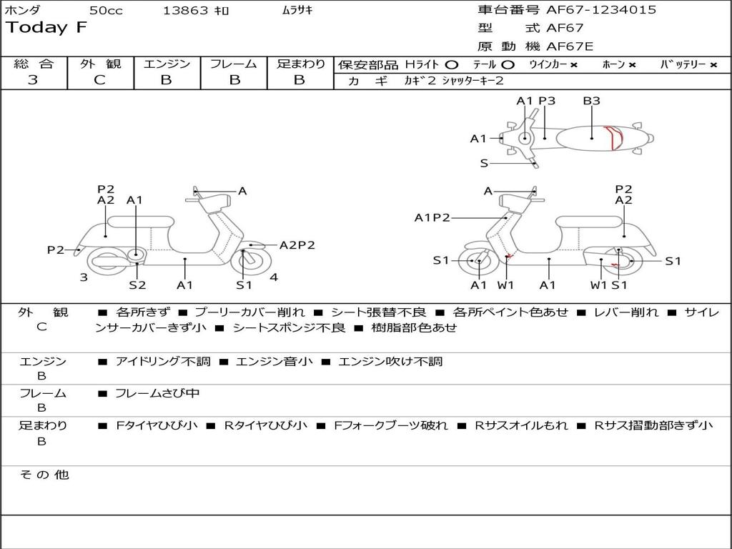 | Номер рамы / VIN | AF67-1234015 |