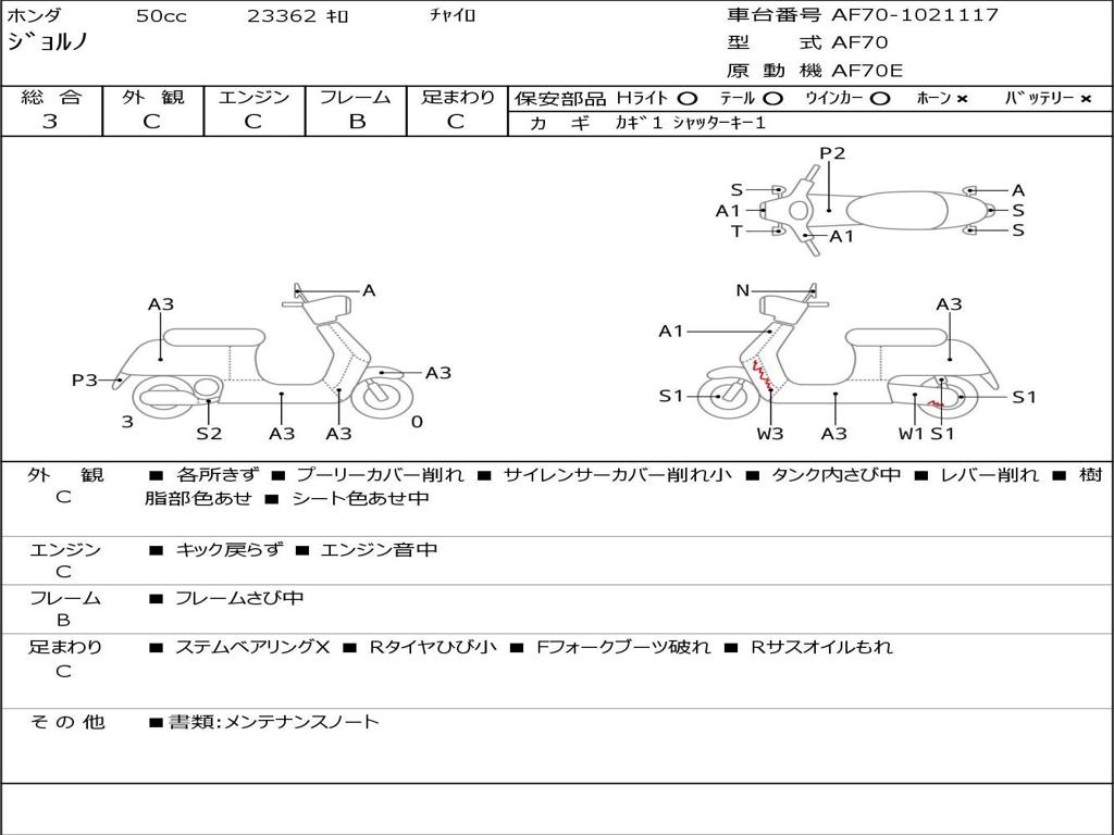 | Номер рамы / VIN | AF70-1021117 |