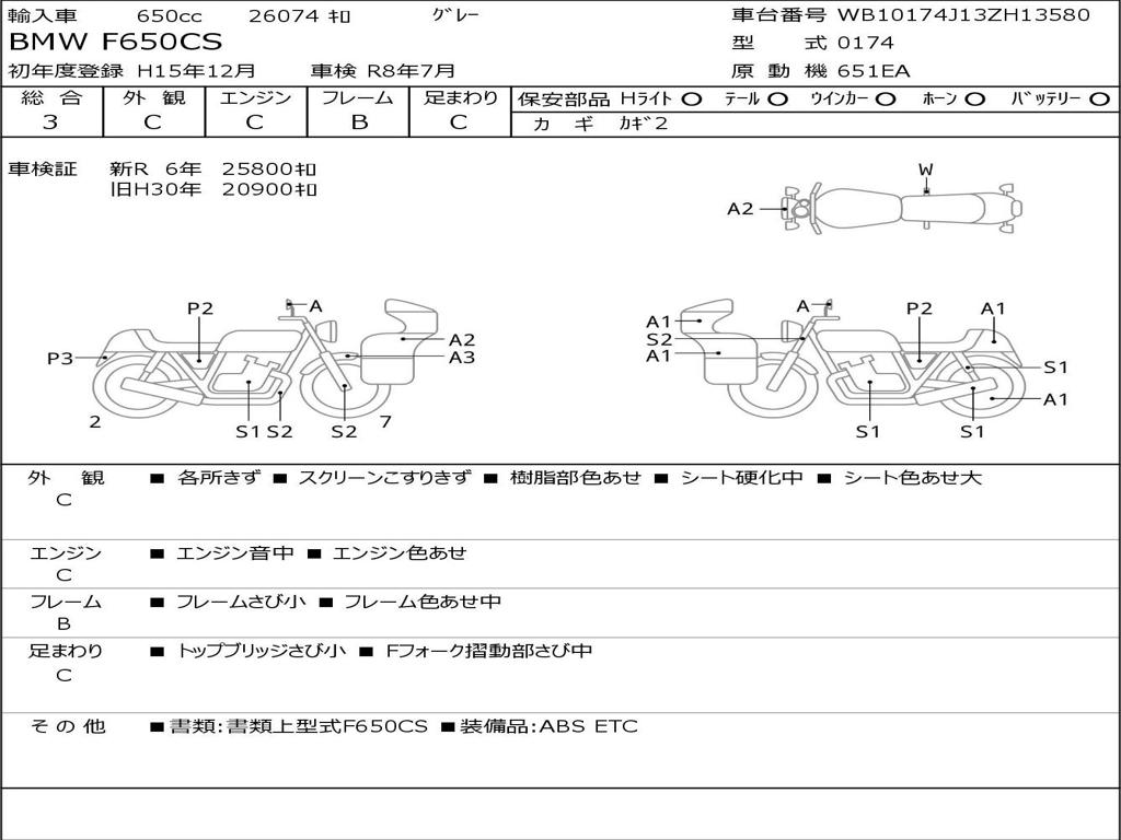 | Номер рамы / VIN | WB10174J13ZH13580 |