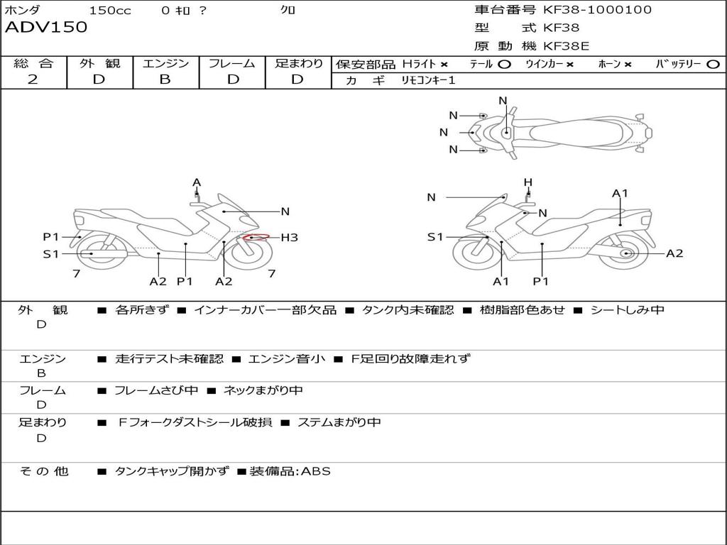 | Номер рамы / VIN | KF38-1000100 |
