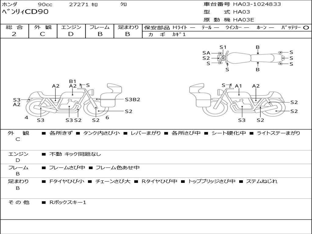 | Номер рамы / VIN | HA03-1024833 |