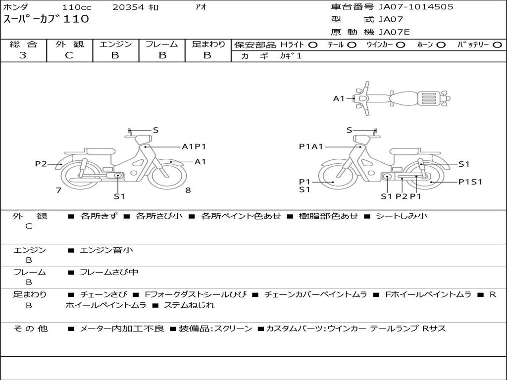 | Номер рамы / VIN | JA07-1014505 |