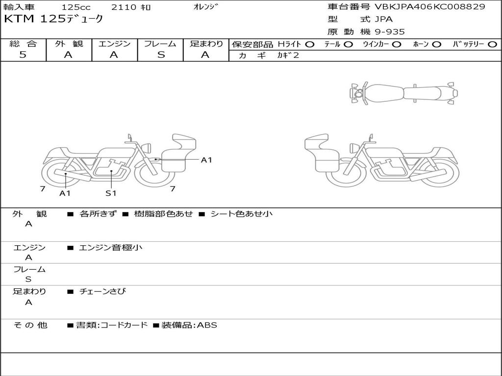 | Номер рамы / VIN | VBKJPA406KC008829 |