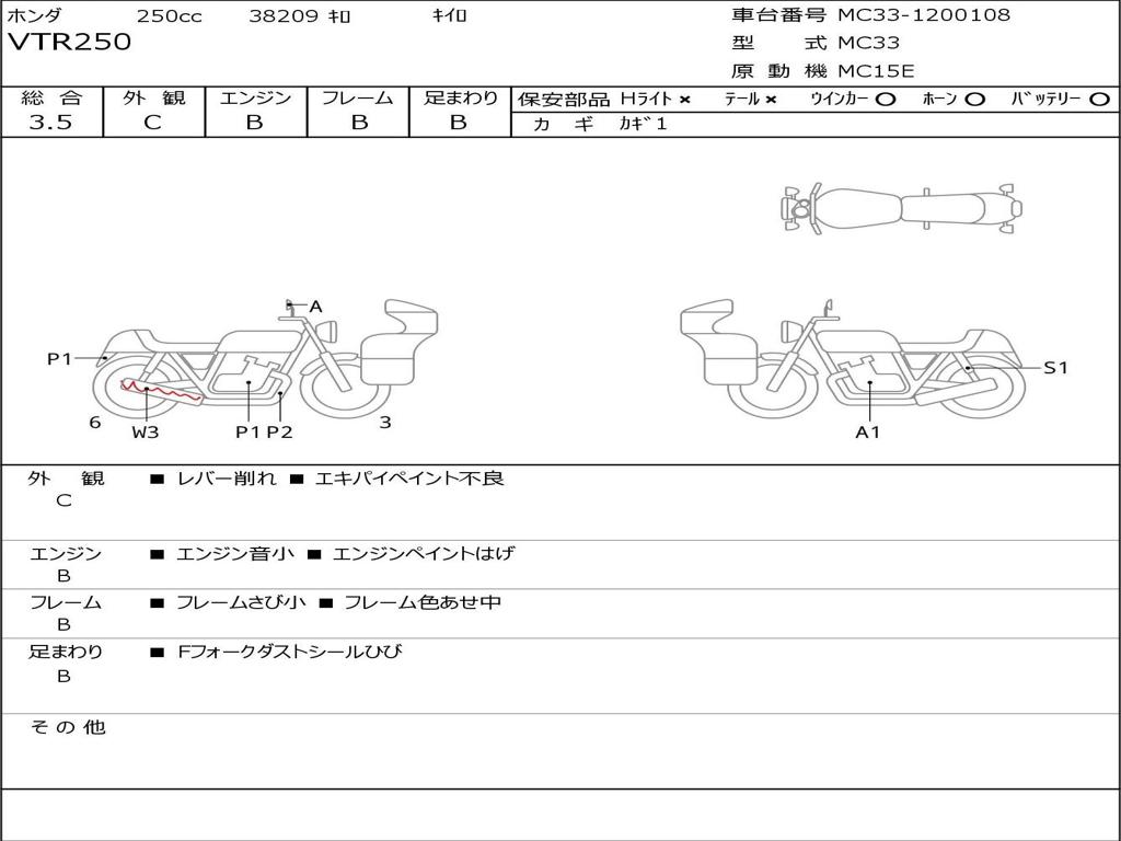 | Номер рамы / VIN | MC33-1200108 |