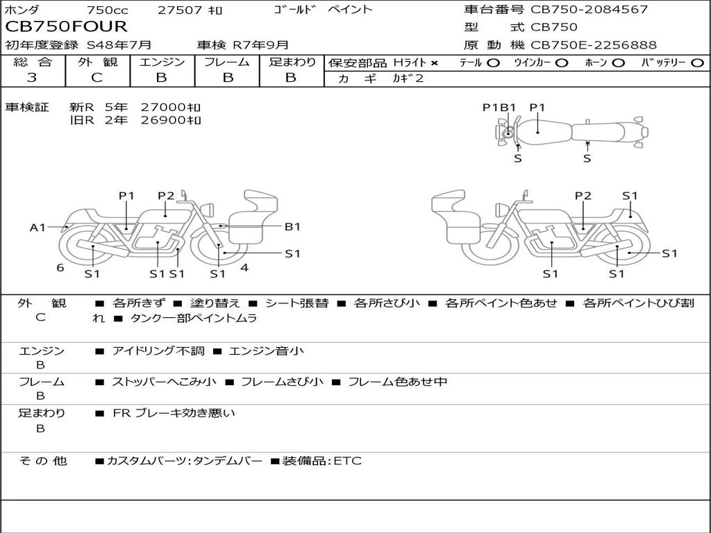 | Номер рамы / VIN | CB750-2084567 |