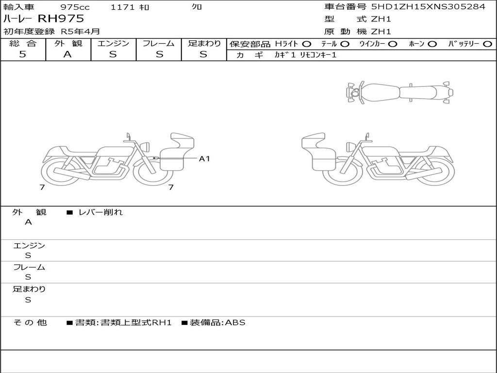 | Номер рамы / VIN | 5HD1ZH15XNS305284 |