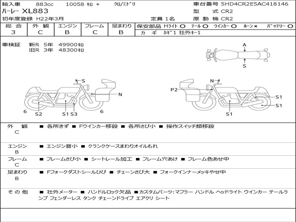 | Номер рамы / VIN | 5HD4CR2E5AC418146 |