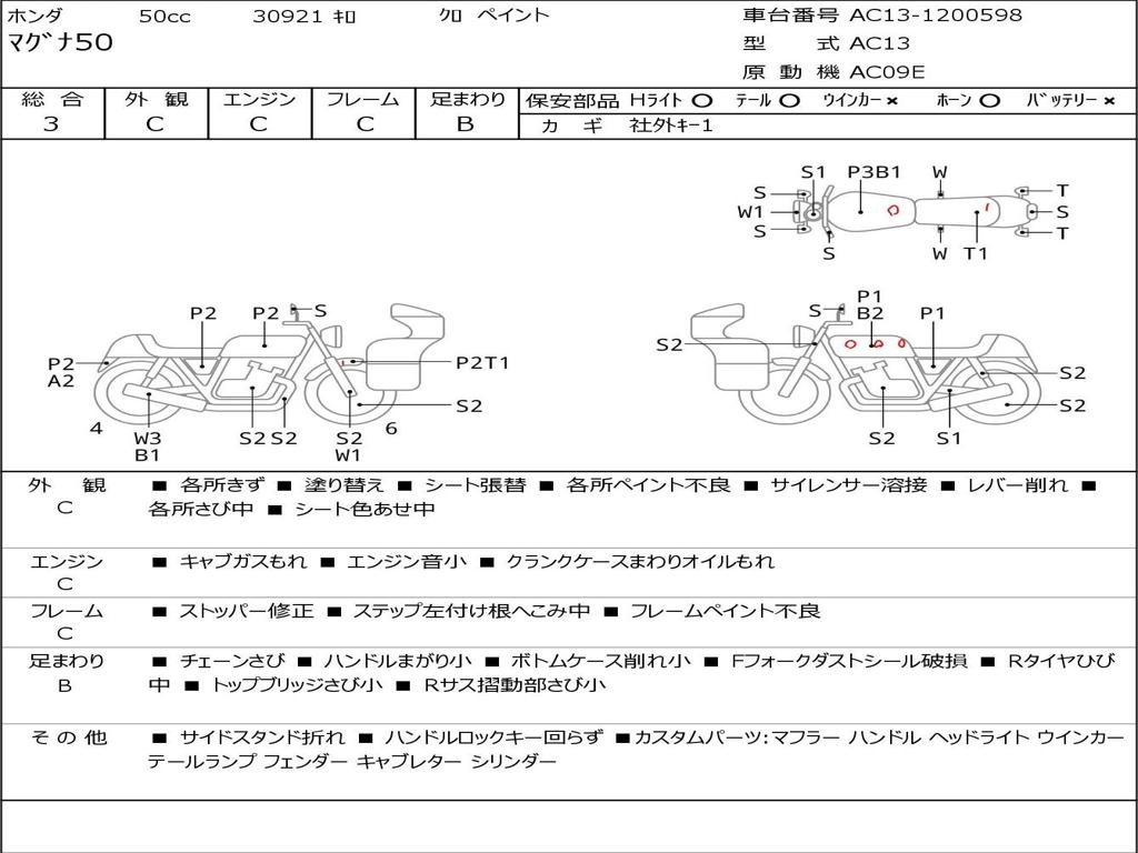 | Номер рамы / VIN | AC13-1200598 |