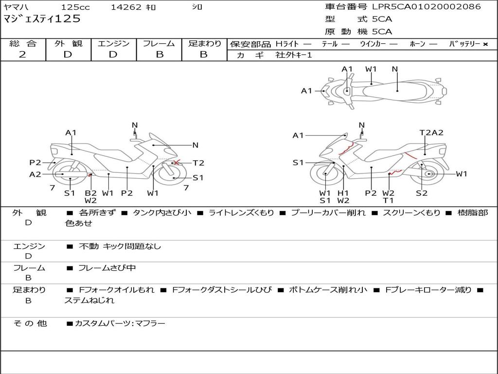 | Номер рамы / VIN | LPR5CA01020002086 |